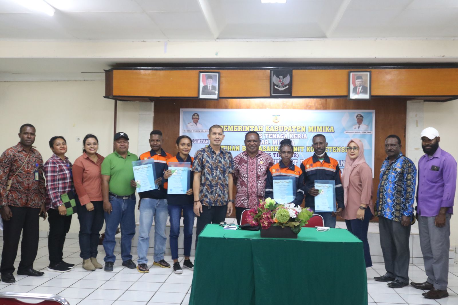 Disnaker Mimika Bersama LPK Yaumapare Timika Serahkan Sertifikat Pelatihan Kepada 54 Peserta Training