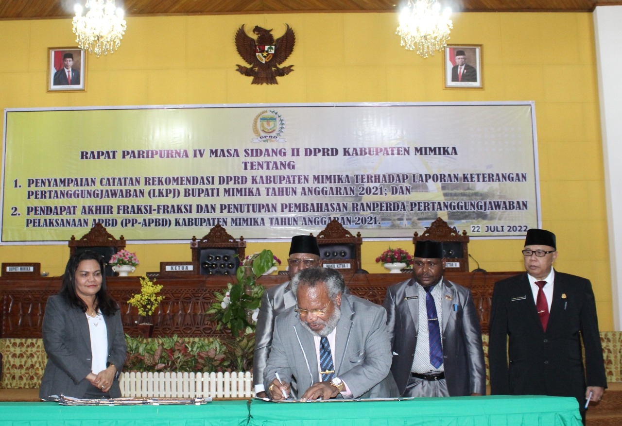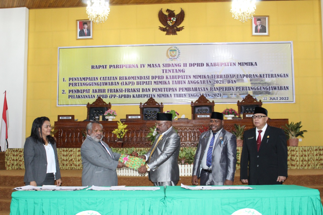 Tujuh Fraksi di DPRD Mimika Menerima dan Menyetujui LKPJ dan PP-APBD TA 2021 Bupati Omaleng