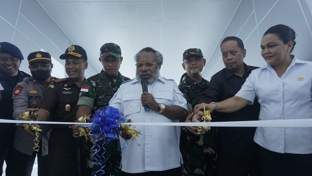 Bupati Eltinus Omaleng Resmikan Penggunaan Garbarata Bandara Mozes Kilangin Timika